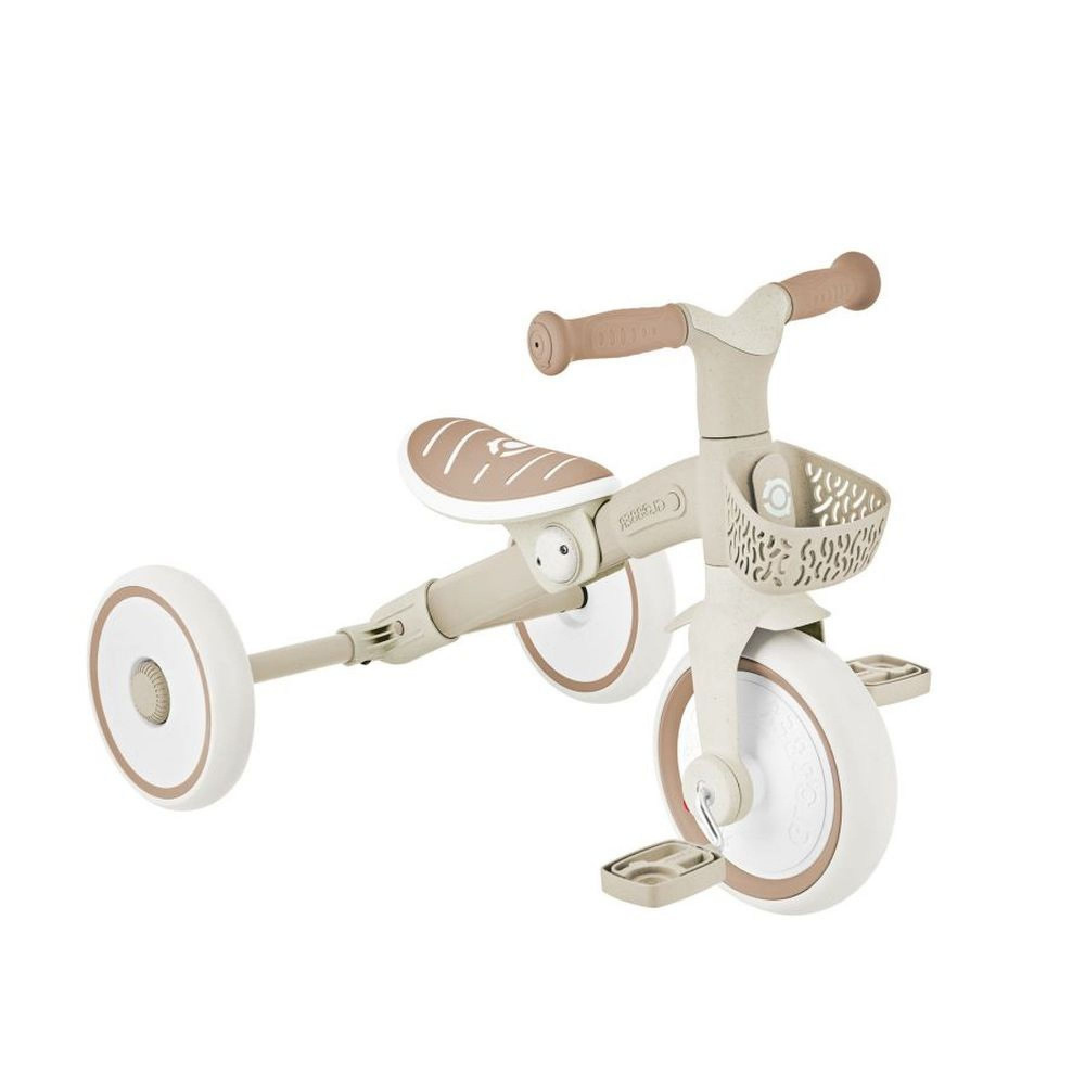 Découvrez le Tricycle learning évolutif - taupe de la marque Globber , Eco-conçu. Le tricycle LEARNING 2-EN-1 PLUS, 100% plastique recyclé et paille de blé biosourcée, est un premier tricycle d’apprentissage, idéal pour les bébés à partir de 12 mois. Évolutif, il se transforme en draisienne sans outils. Il est conçu spécialement pour les tout-petits, pour développer leur motricité, leur équilibre et leur coordination. Le changement de tricycle à draisienne se fait sans outils avec de simples pressions sur des boutons. Un espace est prévu derrière la selle pour ranger les pédales lorsqu'elles ne sont pas utilisées.
