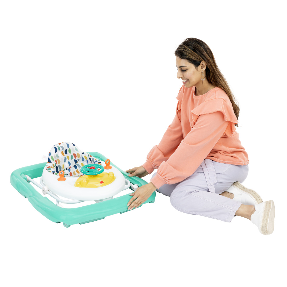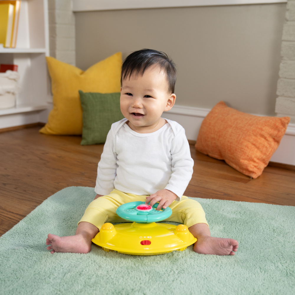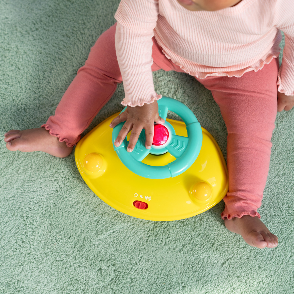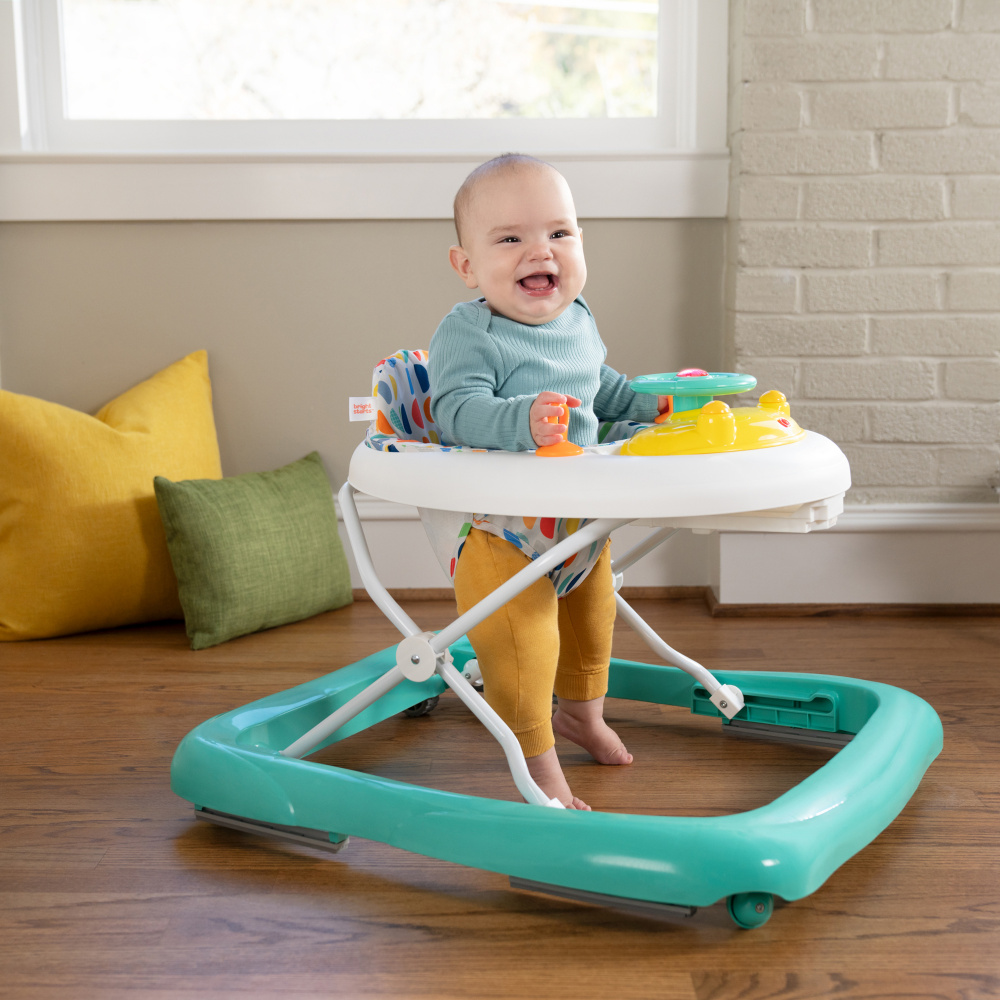 Faites découvrir la joie des premiers pas à votre tout-petit avec le trotteur lumineux et sonore Ready to Roll de Bright Starts ! Ce trotteur 2-en-1 accompagne bébé dans ses premières explorations grâce à deux modes d’utilisation : assis pour jouer ou debout pour marcher. La station de jeu électronique amovible transforme chaque instant en aventure sensorielle : volant interactif, klaxon, lumières LED et sons réalistes de voiture éveillent la curiosité de bébé tout en développant sa motricité fine. Une fois détachée, la station devient un jouet d’éveil portatif, idéal à la maison comme en déplacement. Conçu pour grandir avec bébé, le trotteur offre 3 hauteurs réglables et un dossier haut rembourré pour un confort optimal. Sa structure stable, ses roulettes fluides et ses attaches pour jouets supplémentaires garantissent un apprentissage de la marche à la fois ludique et sécurisé. Facile à plier et à ranger, le trotteur Ready to Roll allie plaisir, sécurité et praticité — un incontournable pour accompagner les premiers pas en douceur !