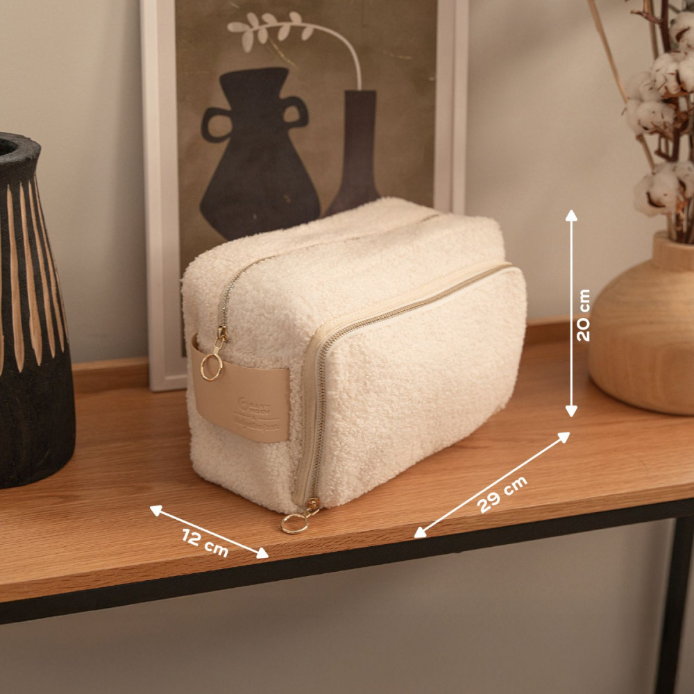 La Trousse de soin bouclette white de la marque Babymoov accompagne les parents dès la naissance de bébé grâce à son format généreux de 6 litres et à son organisation pratique avec double poche. Co-créée avec la créatrice @babyatoutprix, elle combine un design moderne en tissu bouclette tout doux, des zips dorés élégants et une anse en simili cuir beige. Elle contient 11 accessoires essentiels soigneusement sélectionnés pour les soins et l’hygiène de bébé dès les premiers jours, que ce soit à la maternité, à la maison ou en déplacement. Son intérieur déperlant est facile à nettoyer et son format évolutif permet de la réutiliser ensuite comme trousse de toilette familiale ou trousse personnelle.