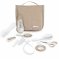 La Trousse de toilette nomade 10 accessoires terre d'argile de la marque Béaba est l’alliée idéale pour prendre soin de bébé au quotidien, à la maison comme en déplacement. Compacte et bien organisée, elle contient tous les indispensables : thermomètre digital, mouche-bébé manuel, ciseaux à bouts ronds, lime à ongles, brosse, peigne, tétine doseuse, pince à biberon, gant de toilette, bavette imperméable et anneau de dentition réfrigérant. Grâce à sa poignée de transport et son format léger, elle se glisse facilement dans un sac à langer. Son tissu déperlant protège les accessoires et se nettoie en un geste, tandis que ses rangements intérieurs permettent d’accéder rapidement à chaque élément. Pratique, complète et élégante, c’est un indispensable dès la naissance.